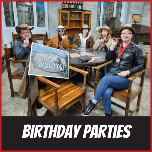 Book your group to do the Escape Rooms, then add our Saloon Party Room and continue your party celebration after the game! Whether it’s a kid's or grownup's party, we can help you put a package together to make it nice and easy. We are a licensed venue, offering a range of drinks for before, during, and after the game. We can organize finger food platters for you to enjoy, and you're welcome to bring in your birthday cake.