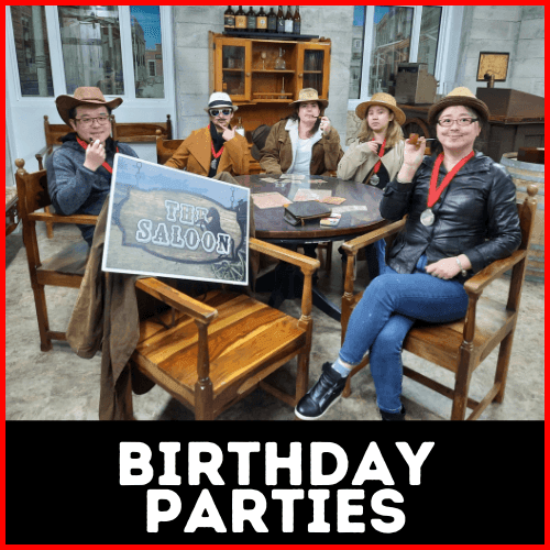 Book your group to do the Escape Rooms, then add our Saloon Party Room and continue your party celebration after the game! Whether it’s a kid's or grownup's party, we can help you put a package together to make it nice and easy. We are a licensed venue, offering a range of drinks for before, during, and after the game. We can organize finger food platters for you to enjoy, and you're welcome to bring in your birthday cake.